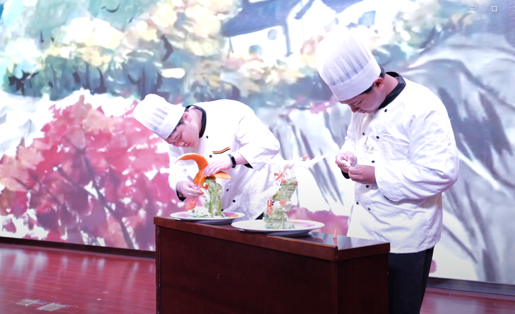 现场播放中天集团企业文化宣传片,带大家感受“诚信担当、创新实干”的中天精神,这不仅仅是企业发展的精神力量,也是如东实现跨越发展的重要启示,更是值得我们职校师生学习的优秀精神品质。由现代服务管理系服装高职班学生带来的时装秀、幼儿高职班学生带来的绘画作品、烹饪中职班学生带来的雕刻作品生动展现了职校生对中天精神的理解与诠释。