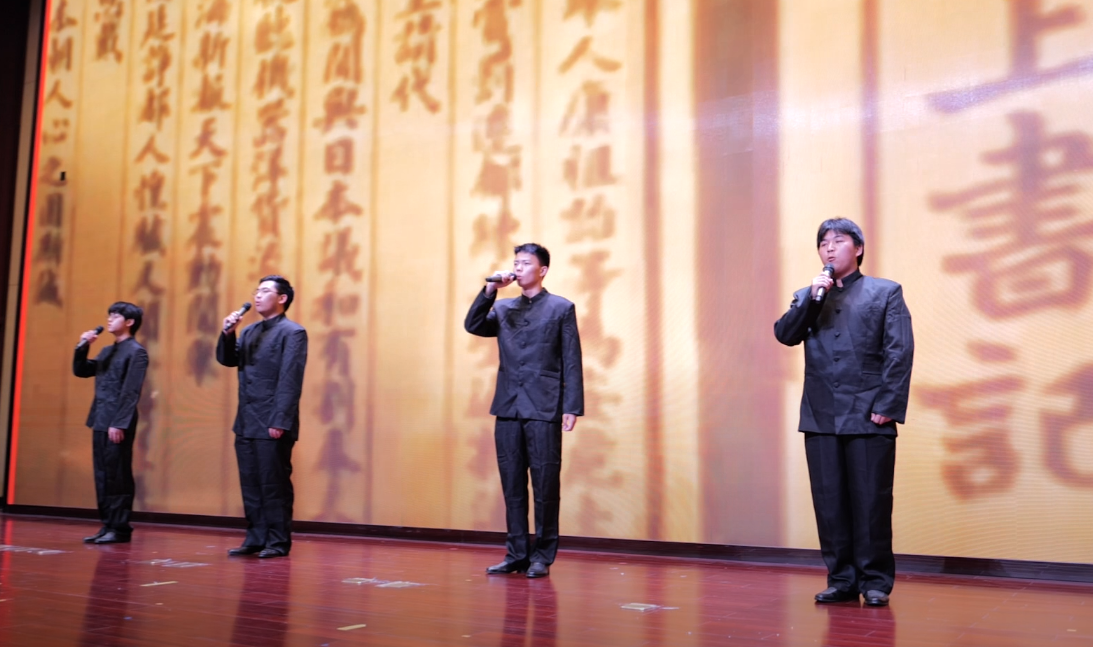 汽车工程系张嘉桐等4位学生带来的诗朗诵《中国少年说》,磅礴的气势充分展示了少年的勇气和担当。