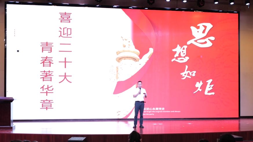 2022年6月22日下午,中共如东开放大学委员会在敬德堂开展了主题党日活动。此次活动以“喜迎二十大 青春著芳华”为主题,由现代服务系党支部和汽车工程系党支部联合承办。校党委书记余飞,党委委员孙智明、曹卫民、陈建、肖海兵、唐晓云及全体党员同志、部分学生代表参加了活动。