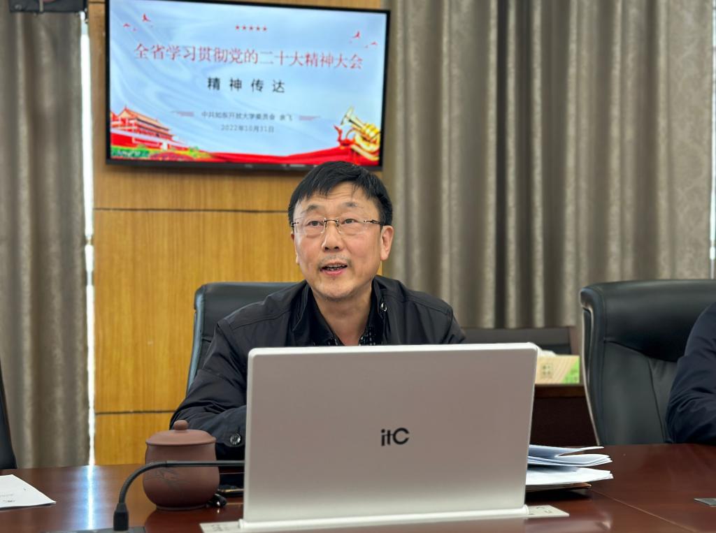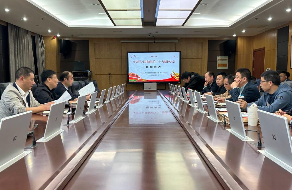 余飞书记传达了全省学习贯彻党的二十大精神大会的会议要求:要深刻领会新时代10年伟大变革的深远历史意义,坚定“四个自信”,始终高举中国特色社会主义伟大旗帜,坚定不移沿着习近平总书记指引的方向,把新时代中国特色社会主义不断推向前进。要深刻认识习近平新时代中国特色社会主义思想是我们党坚定信仰信念、把握历史主动的根本所在,是我们不断夺取新时代新征程各项事业伟大胜利的思想灯塔和行动指南。要深刻领会党的中心任务和未来五年的重大部署,深刻把握高质量发展这一首要任务,完整准确全面贯彻新发展理念,积极服务构建新发展格局,全面强化教育、科技、人才基础性、战略性支撑。要深刻领会“三个务必”的谆谆教导和团结奋斗的时代要求,牢记党的初心使命,牢记“国之大者”,牢记敢于斗争、善于斗争,自觉为党分忧、为党尽责、为党奉献,广泛汇聚起奋进新征程、夺取新胜利的磅礴力量。