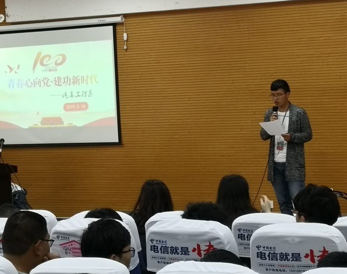 今年是五四运动100周年,为激励和引领广大青年传承和弘扬以爱国主义为核心的五四精神,根据学校团委安排,汽车工程团总支组织开展了一系列形式多样、内涵丰富的“青春心向党·建功新时代”主题团日活动。