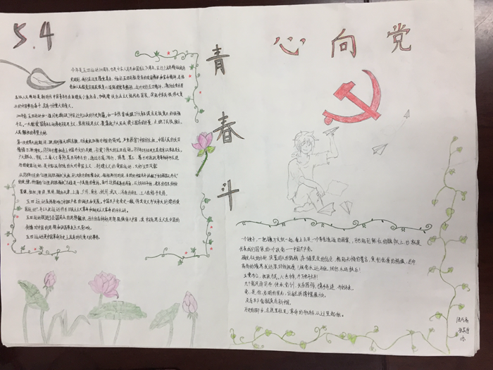 各班组织学生参加手抄报比赛,表达对五四精神的传承和对祖国的热爱。