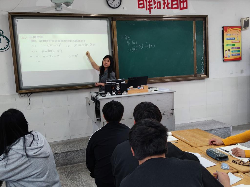 两节数学课各具特色,夏明明老师执教的《任意角的三角函数》由专业引入,通过让学生测量学校综合楼高度,引入新课。学生在探究新知的同时,感知数学来源于生活、服务于专业,激发学生的学习热情。陈林燕老师执教的《复合函数的导数》由浅入深,层层递进,学生在探究过程中逐步掌握新知。