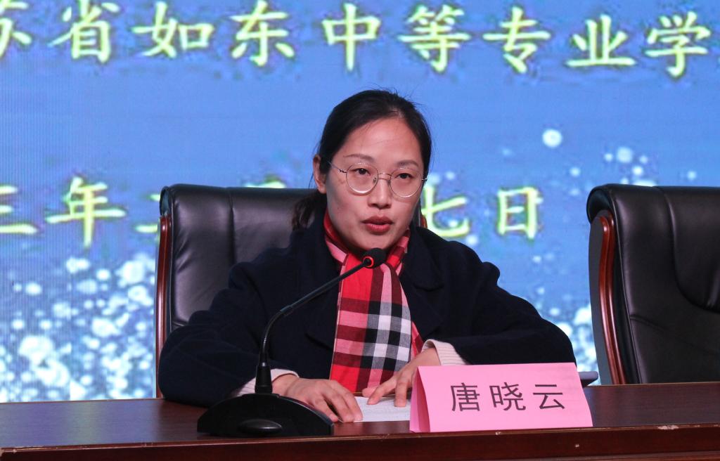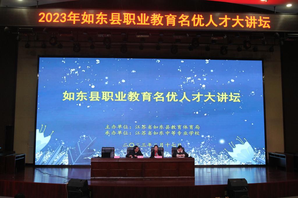 2月17日下午,我校举办如东县名优人才大讲坛第十一次活动。如东县教育体育局成职教办唐晓云主任,我校曹峰副校长、科研处徐冬梅主任、县骨干教师马莉莉、石小燕两位老师及全体教学人员参加了此次活动。此次活动由科研处徐冬梅主任主持。
