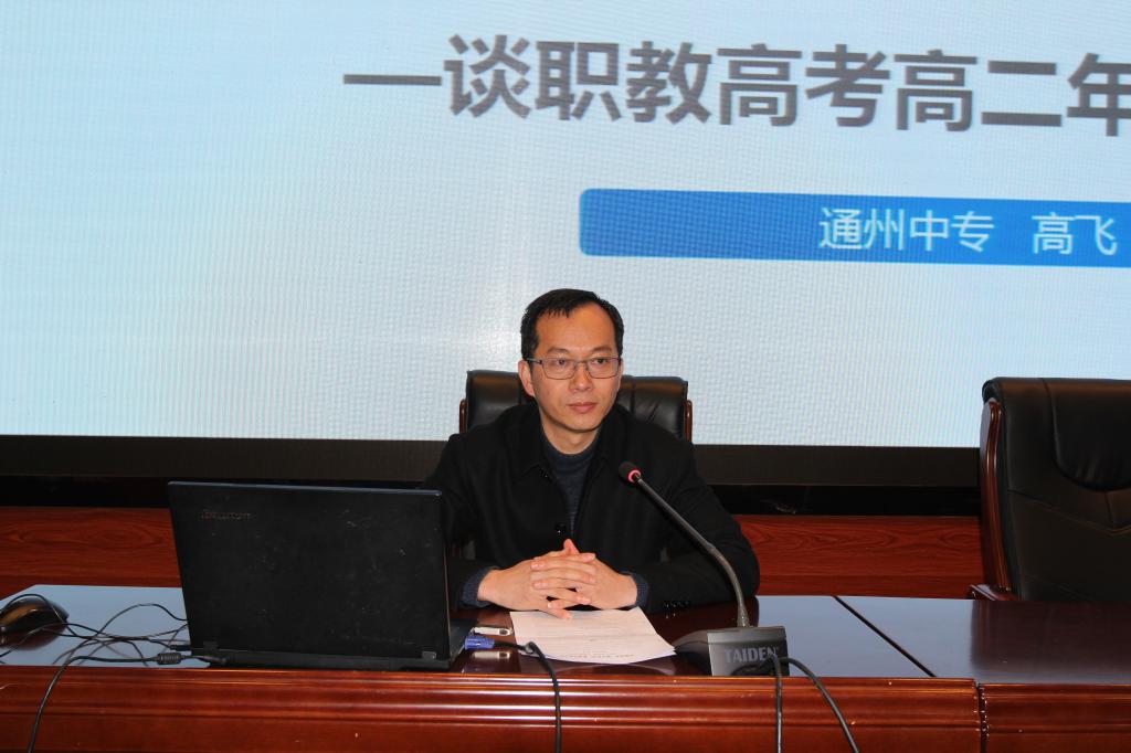 21日下午,通州中专高飞副校长以《职教高考“励志研学”管理经验分享—谈职教高考高二年级教学管理》为题,从研究分析学情,提高励志管理针对性;加强队伍建设,增强团队励志意识;构建励志教育全员活动;促进家校合作四个方面分享了通州中专在教学管理方面的经验和做法。