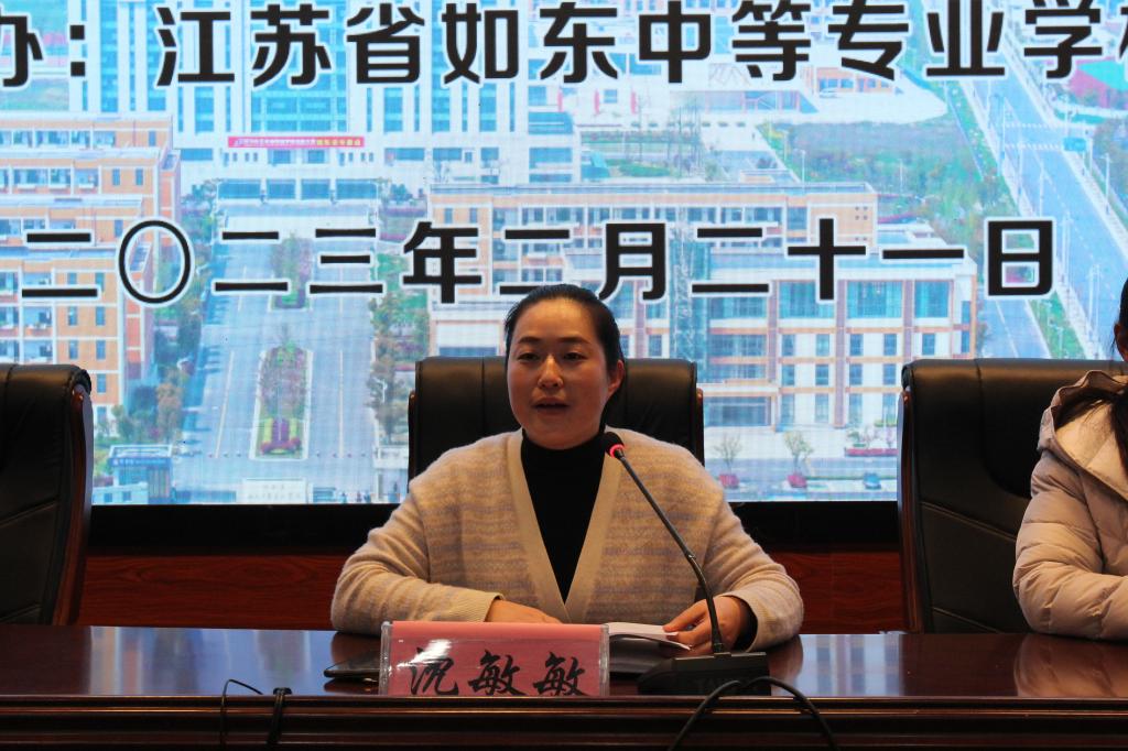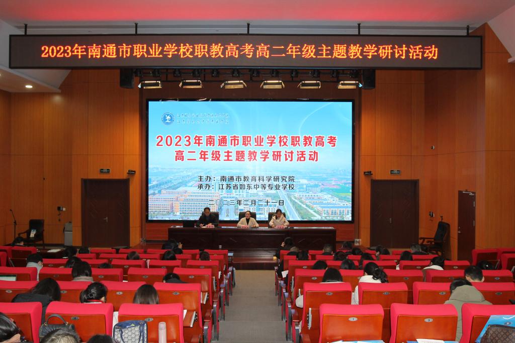 为进一步加强全市职业学校职教高考教学研究,夯实基础年级教学,加强课堂互动,提升教学实效。2月21日~2月22日,南通市教育科学研究院在我校举行全市职业学校职教高考高二年级主题教学研讨活动。南通市教科院教研员沈敏敏,如东县教育体育局成职教办主任唐晓云,如东中专对口单招部主任花金明及市内各职业学校职教高考教学管理负责人、骨干教师代表参加了此次活动。此次活动开幕式由沈敏敏教研员主持,唐晓云主任发表开幕式致辞。