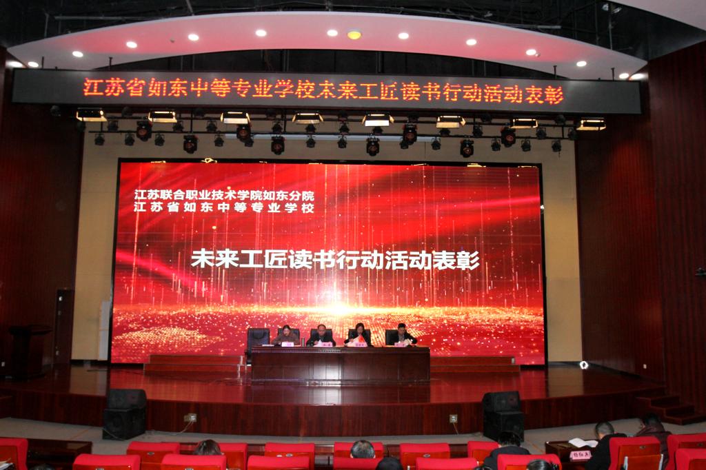 12月20日下午江苏省如东中等专业学校举行未来工匠读书行动活动表彰暨第二十次“扶海英才”如东县职业教育名优人才大讲坛活动。出席表彰活动领导有学校副校长陈建,学校副校长唐晓云,学校党委委员祁勇,科研处主任徐冬梅。科研处主任徐冬梅主持会议,全体教学人员及获奖学生参加了此次活动。