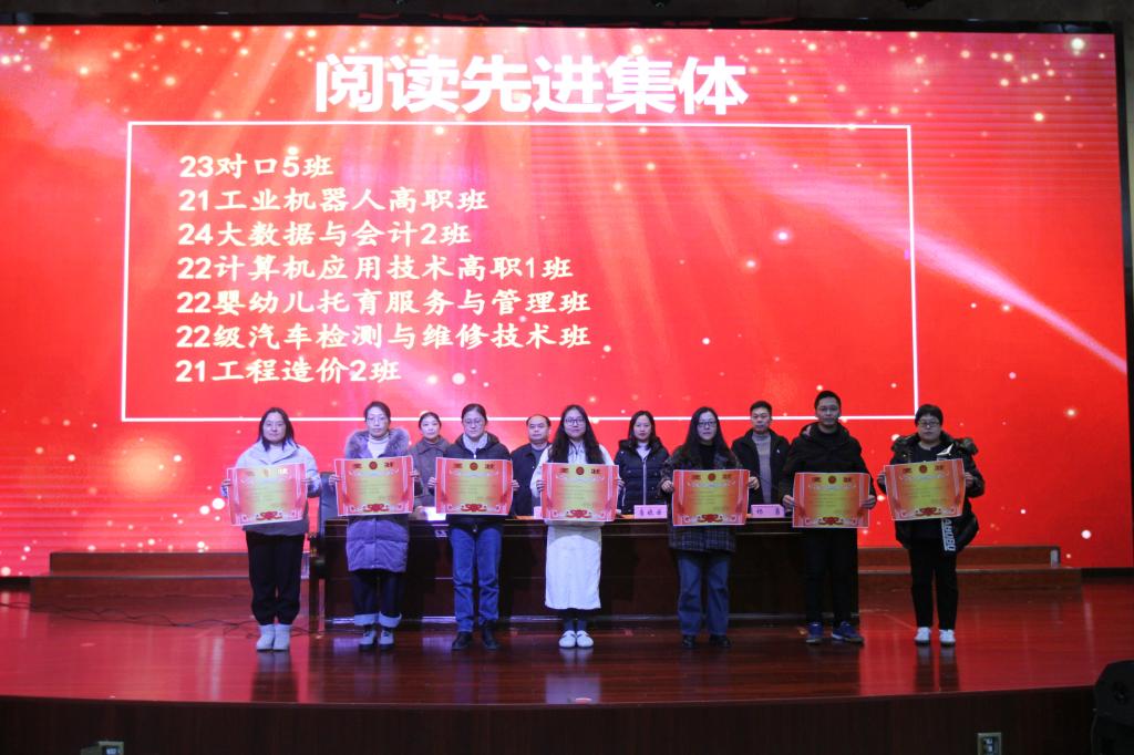 活动伊始,陈建副校长宣读2024年度学校未来工匠读书行动活动表彰名单。出席活动领导分别为获得“读书之星”、“阅读先进集体”、“最美阅读空间”、“最美阅读推广人”的集体和个人以及在南通市职业学校教师专业阅读优秀论文、学科育人案例与经典音视频评比获奖的老师颁发荣誉证书。活动现场还展示了“最美阅读空间”部分解说视频。