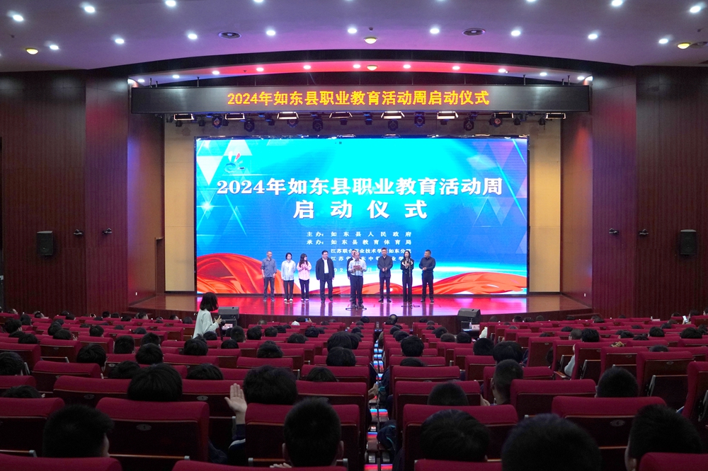 如东分院党委书记丛杰主持2024年如东县职教活动周启动仪式。
